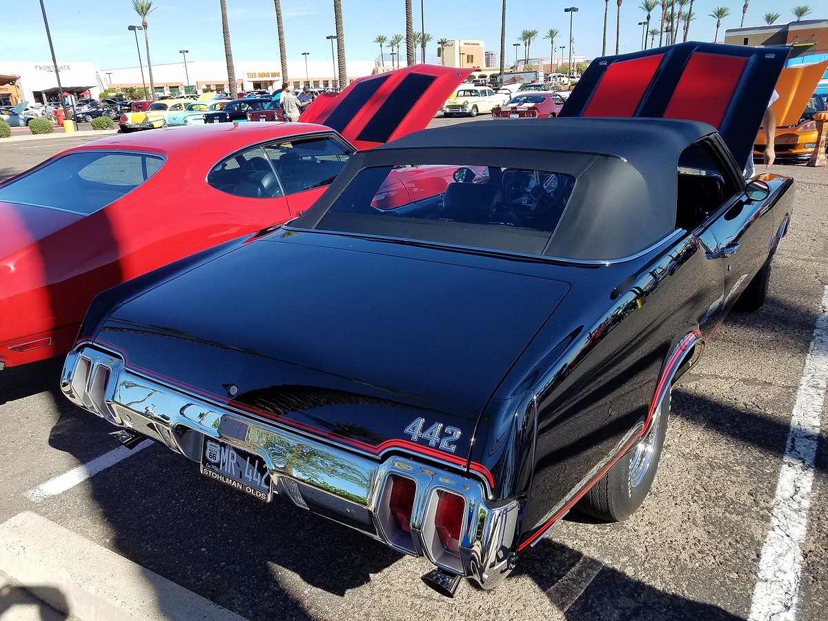 I have surgery this coming Wednesday, so that will limit activities for a while. We met up with John Ward, saw Toby Shine's car...but Toby was home watching college football (smart man!), Kevin DeWitte, Mike Greenawalt, Shaun Price, Paul, Joe Spagnoli, Fred Mandrick, Sizzler Wayne, Ward Gappa, Kenny Berger and Larry Christiansen...among others. It was great to see all of them! It was Olds day at Pavilions, so some killer Olds representation was there today. Enjoy the pics! First group has 426 c.i.d., 409 c.i.d. and 427 c.i.d....what a group! Friends always...Holly and John Ward ![]() Selfie...with John and Holly. I got a lot of compliments on the shirt!!! ![]() John's 426 Hemi GTX convertible has a new owner, Toby S! ![]() ![]() ![]() Toby's 409 convertible is just beautiful! ![]() ![]() ![]() ![]() Sizzler Wayne's 427! ![]() ![]()