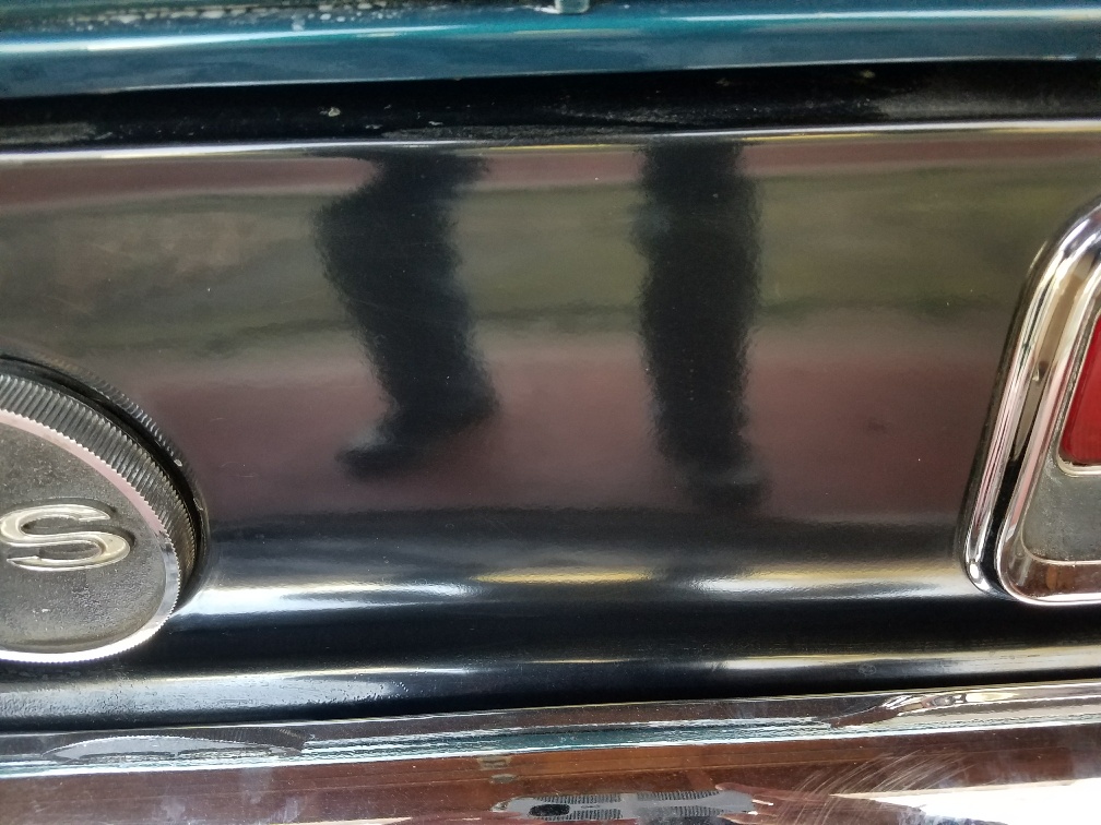 Could someone please provide me with the correct paint code for the blacked out rear panel on a 69 Camaro SS 396? Also, how far down exactly does the black paint go down? Thanks!