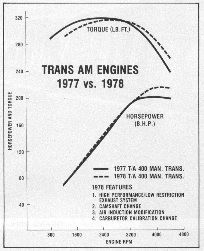 Correct, but 1978-1979 had the good 481988 XX block which is a thicker casting than the 1977 500557 thin-wall. Plus there were cam changes and induction system tweaks which meant 220 horse versus 1977 200 horse. The 481988 XX blocks are in 8 and 9 second Pontiac drag racers running today.
