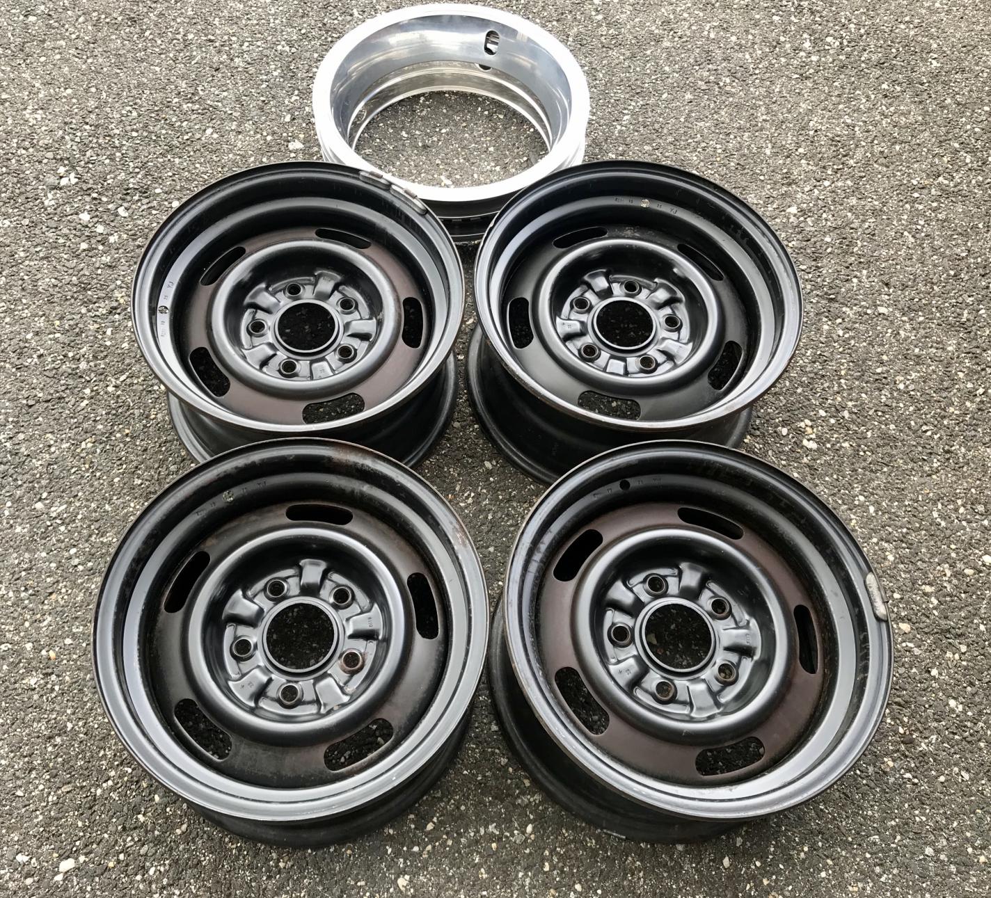 I have a set of 4 YJ code rally wheels. These are 1990 dated service replacements. The wheels measure 14x7” and all 4 have matching dates. The barcode sticker is present on all 4 wheels. They were used for a very short time and then put into storage. (SOLD)