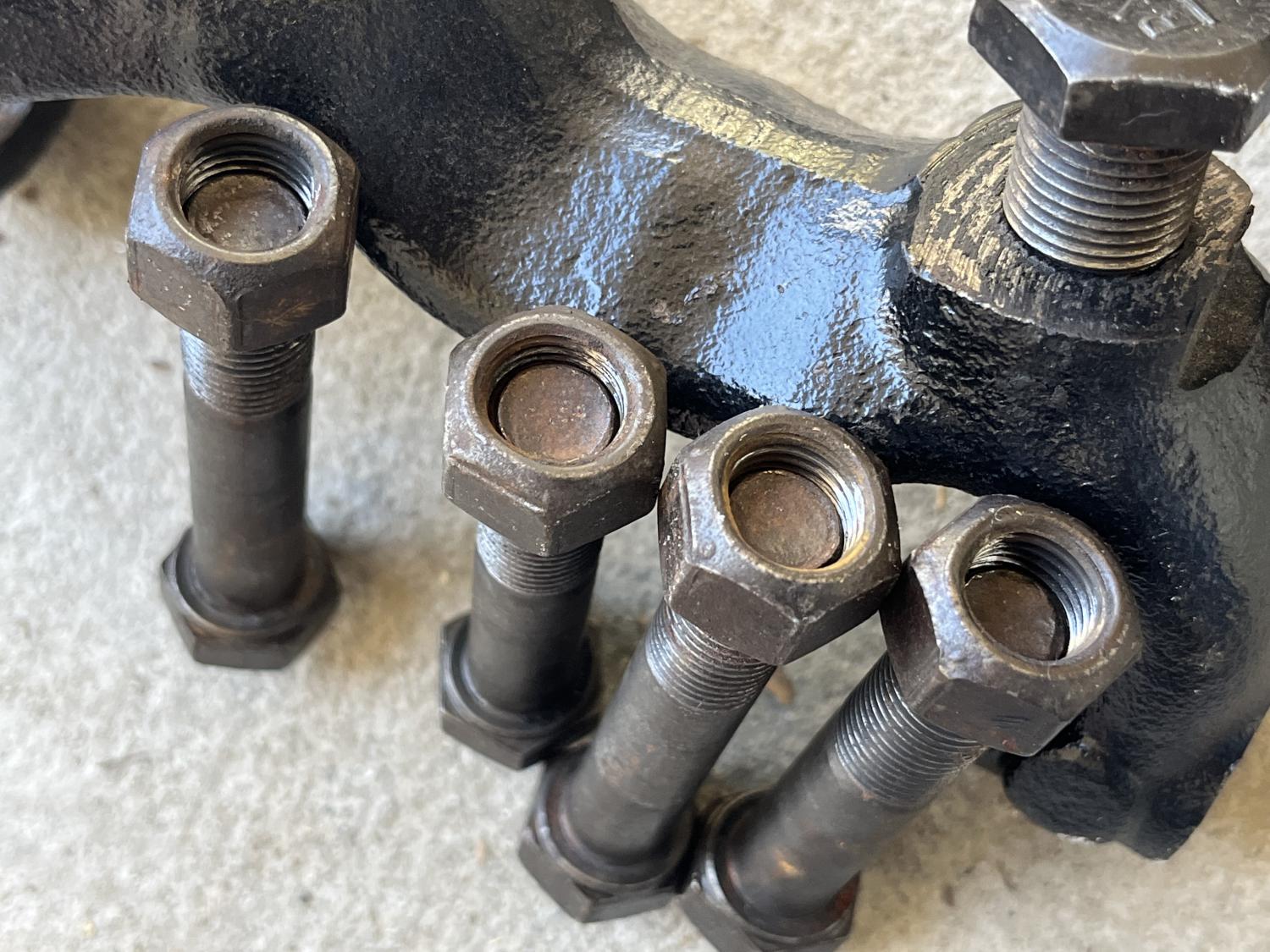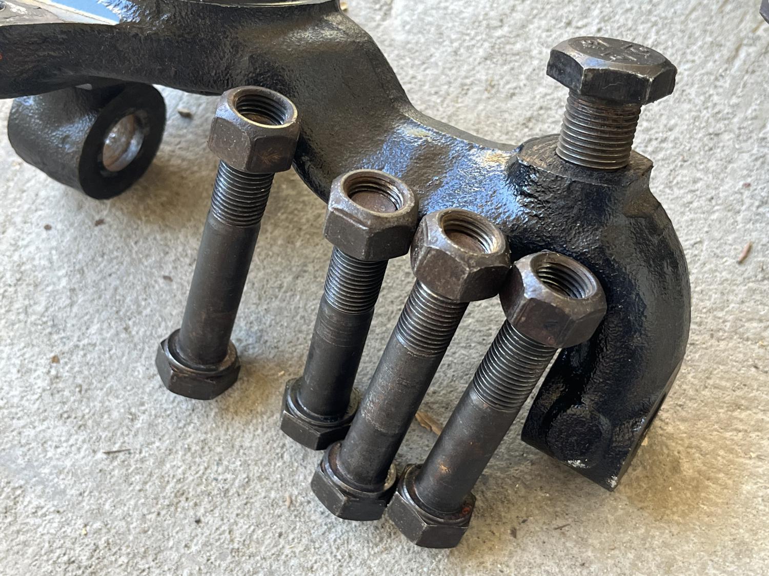 These spindles and all the correct GM factory, assembly line hardware are off a recently running 1969 Camaro. But, of course, these will fit many models. These were recently spray bombed black, but will clean up nicely I bet. All the correct head markings and factory issued grade 8 hardware. For a high end resto IMHO. 190.00 PPG shipped to the 48. Cheers all, Anthony |