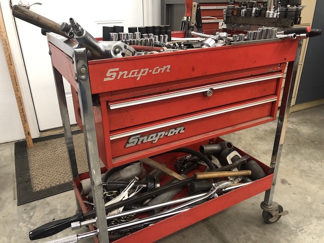 I found some reasonably inexpensive Snap On carts that were in less than desirable condition however rust free and largely dent free. In both examples I disassembled the carts, stripped the trays/drawers, had a local powder coater dust some new color, and I got to work polishing chrome, cleaning casters. In the push cart specifically, I had to have decals made for it. I think they came out great! Here are as-purchased pics direct from the for sale ads.