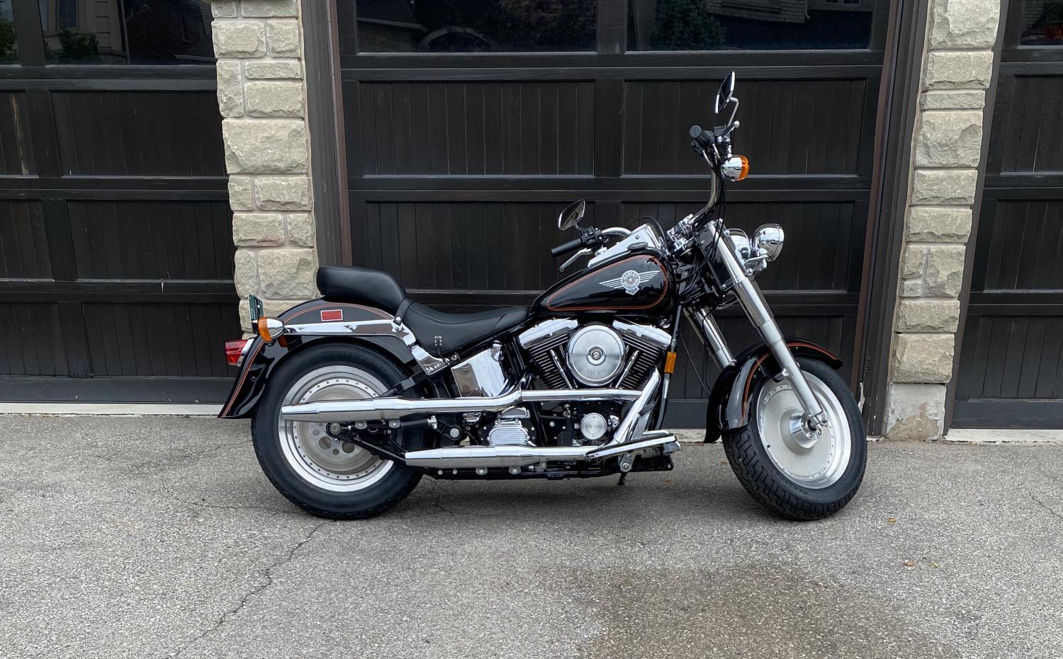 Of course…4 weeks after getting it up here last October, I find a 2,100 original mile Fat Boy exactly like my first bike. The guy is in Georgia and is doing a quick flip. He refuses to register the bike in his name, so I can’t import it to Canada and have to pass. Fast forward to March and I see another one on eBay with 2,300 original miles in Texas. I strike up a conversation with the owner and quickly realize it is the same bike! Young guy bought the bike as his first and had a couple of close calls and got spooked. Bike was in his name, so we made a deal and it’s in my garage. Like I did with the Moo-Glide, it got all oils, filters, tires, carb rebuild, new belt and I put a set of passing lamps on it. I have an NOS engine guard for it also and an NOS seat. Hope to finish it off this weekend ��