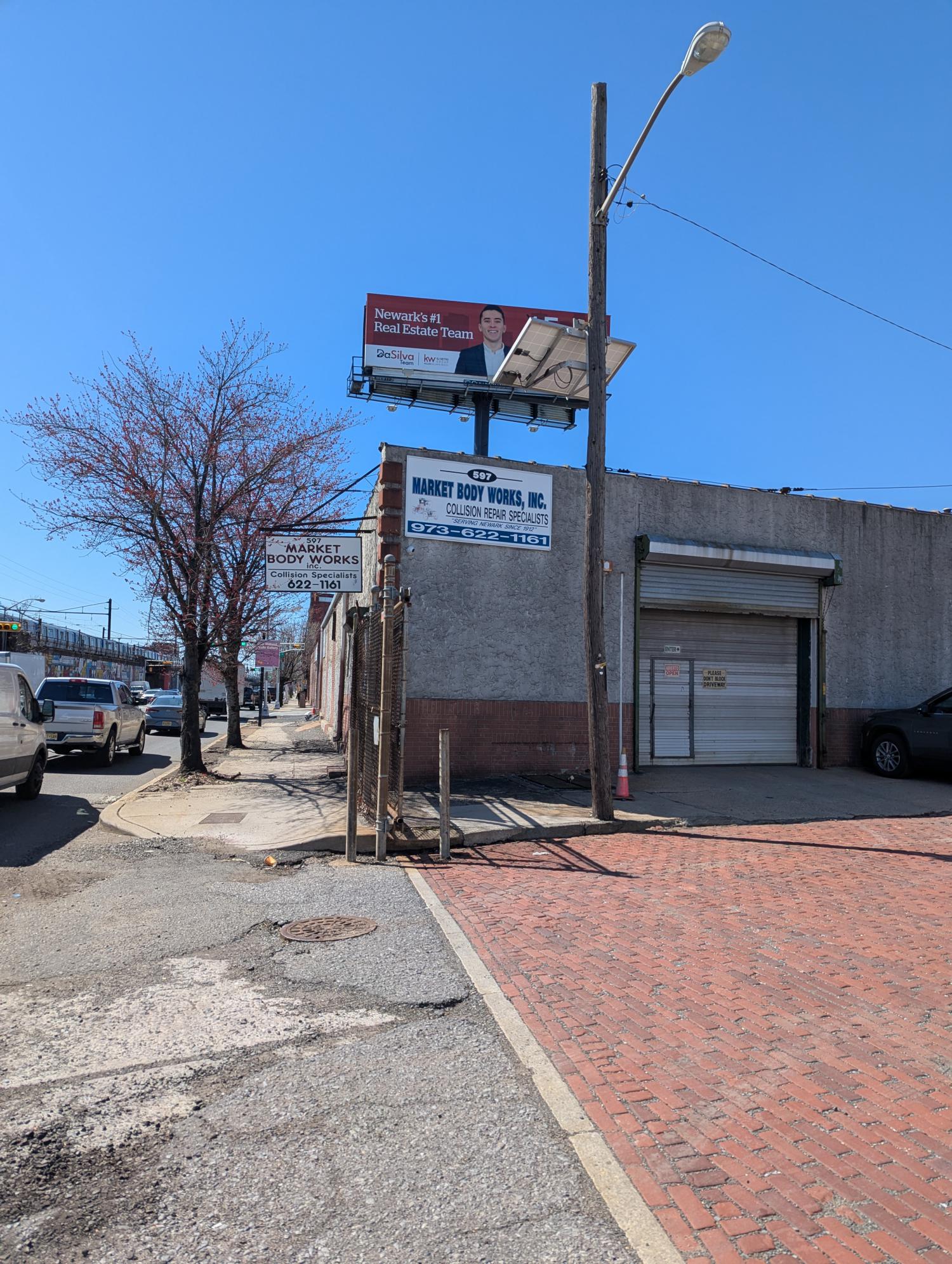 The picture that Bruce posted is one of our buildings as you can see Annex and the address is 585 McCarter Highway. Back in the day this was just a fenced in lot that we used for vehicles that were towed in for repair or salvage. Theft became a problem with the vehicles that were kept there so we had to build a facility for indoor storage. Now it is basically used by Enterprise rent-a-car. The building in the pictures I posted the address is 597 McCarter Highway which was the blacksmith shop/body shop. I will ask my nephews for some current pictures with the cobblestone street that is still there.