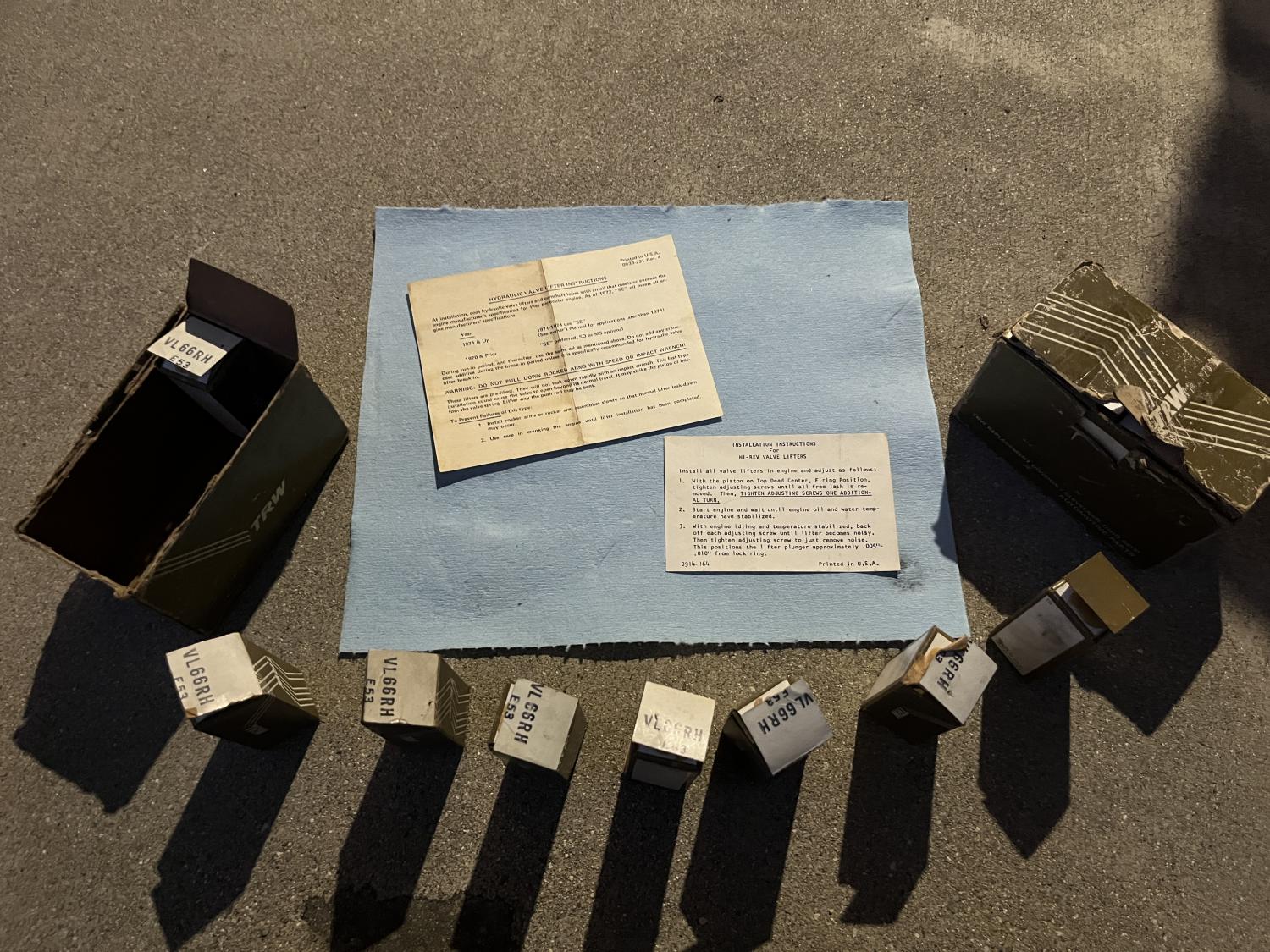 They are TRW part number VL66RH or VL-66 RH for any SBC or BBC small block or big block with hydraulic cam / camshaft and lifter valve train. These are nice, perfect NOS pieces - no issues that I see - many photos below for the full picture, MADE in the USA - these have been discontinued for decades. For all I know TRW is the OEM manufacturer for GM... I opened each box myself to inspect and photograph. See pictures. Any discoloration on the lifters is original (protective) coating - you can see in the bottom right corner of the blue shop towel a circle of stuff that I cleaned off the end of one lifter very gently. Getting hard to find vintage "Made in the USA" engine, or any, parts any more IMO. 400.00 PPG shipped to the 48. Cheers all, Last edited by AnthonyS; 08-06-2024 at 06:05 AM. Reason: typo |