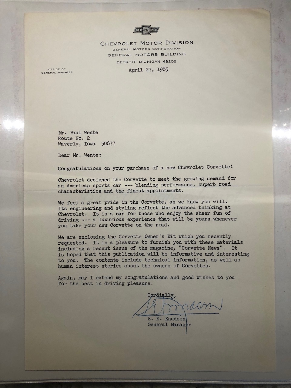 My good friend Brian and I went to the farm Saturday (same farmstead where it resided from new) and picked up My cousin's '65 Corvette that he ordered new. He is no longer able to drive or work on it, our mission is to perform maintenance and address a short list of needs so that his wife and kids can take him for rides. I have a vivid memory of driving this Vette at age 15, in the spring of 1965 with just over 400 miles on the odometer. I will update progress. - Bill W |
