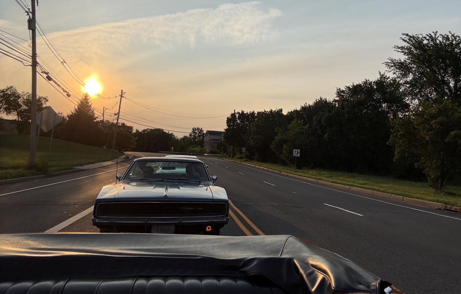 Heading home from a cruise night in my father-in-law's Olds and spotted a 2001 Bullitt Mustang in front of me. I heard a rumble behind and saw a 1968 Charger behind me. Thought I was in a movie for second.