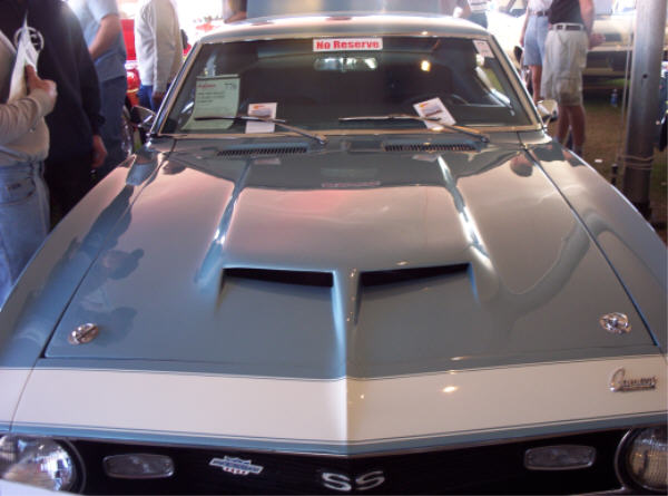 The Brown Camaro from Wagners showed up today at the Scottsdale Classic and was promoted as a real COPO. The suspect bidding reached about 70K but the asking price was around 90K. There were not more than 20 Bidders present. At Russo and Steele check in was the ever moving White with Blue interior Lamar Walden COPO. Weather was about 73*.
