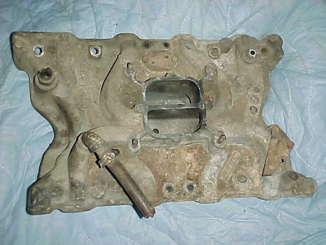 Larry. Looks like you got you a FORD 351M 400 intake there. Check out the similarities to the newer Performer. Shape.. bolt pattern.... Bend over Larry..Sorry [img]/ubbthreads/images/graemlins/grin.gif[/img]
