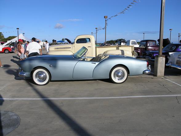 Plenty of very nice rides showed up and though mostly street rods, the Muscle Cars were out in force as well with Camaro's Novas and Chevelles along with the Fords and Mopar folks but a car I have never seen before tonight was a bit different. Anyway Trivia question of the day is what year and make is this car. Give you a hint, its Fiberglas.