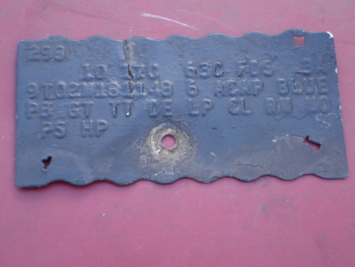 Here are some pics I took today. I found the fender tag and owners manual in the glove box. Anyone know how to decode these things? i was never a big mustang fan, but any car with factory flat black paint, giant hood scoop, hood pins, and rear fin must be pretty cool!!!