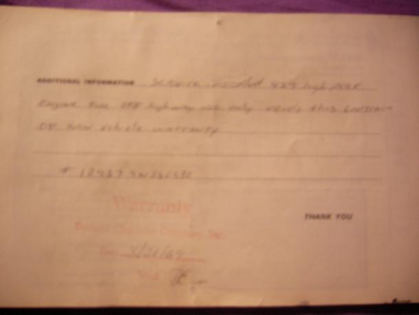 Below is his e-mail if anyone else can knows anything about it! (you've got a good memory Rob!) Thanks Glenn. I have a -69 Camaro RS/SS with a service install 427 hi-perf by Brahms Chevrolet Palisades Park NJ. As they say it was sponsored by Brahms -69 -71 when it was racing at Englishtown Oldbridge Park. Ive been searching info about this car for 3 years now. Maybe it raced at Long Island instead. In the service book it says, SERVICE INSTALL 427 HIGH PERF ENGINE FOR OFF HIGHWAY USE ONLY VOID THIS CONTRACT OF NEW VEHICLE WARENTY #12437 9Nxxxxxx WARRENTY Brahms Chevrolet Company inc Date 3/21/69 Void xx There have been a rolling cage in it. There is a sticker at the inner rear mirror that say NHRA DRIVER SECTOR NORTH EAST I have pictures from mid -90s when they are sanding it down for re paint. And they found Chevy by Brahms written in gold paint at the rear fenders. To me it seems to have been a pro stock or modified production car. If you want pictures, I can e-mail some to you. Nikke __________________