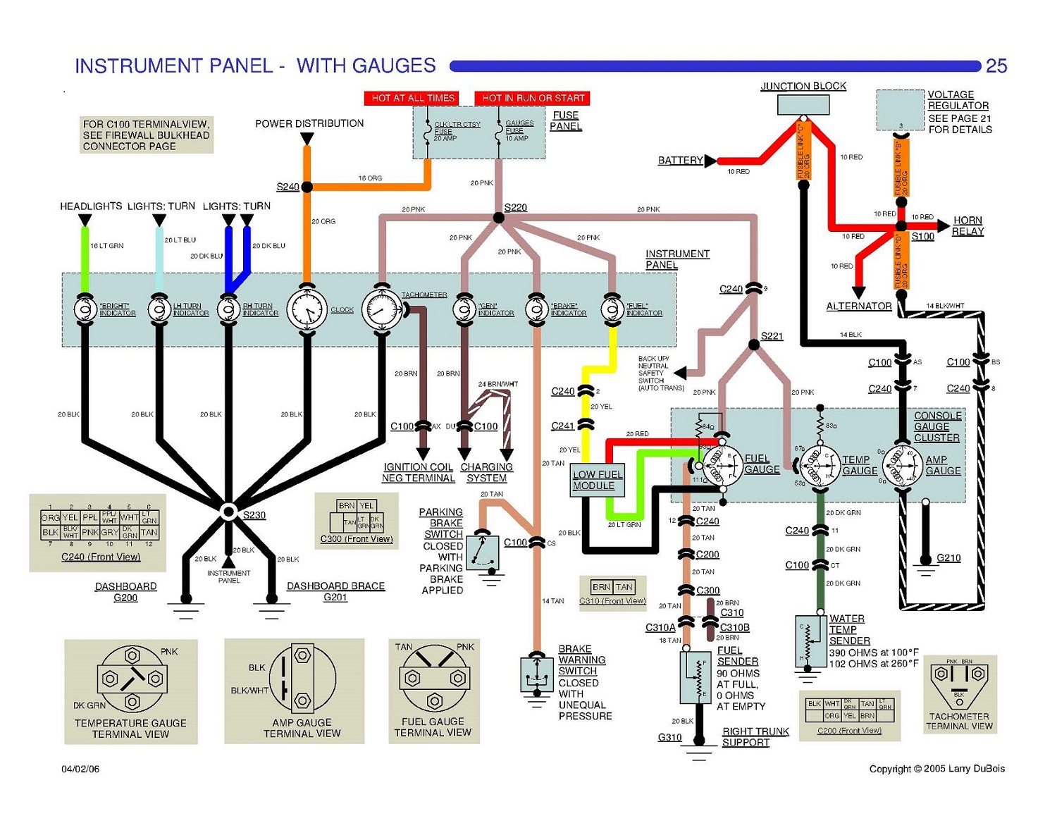 Does any one have a dash wiring diagrams for the low fuel light? I have a console with gauges , low fuel light sender. Does the yellow wire run up to the light socket? If so what wire is on the other side of light socket.