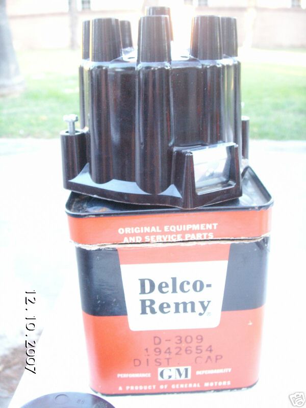 Black caps (D308 and D308R) were used on most all cars, the brown caps (D309 and D309R along with some other long numbered caps that don't have a shorter Delco number) were used mostly on transistor ignition distributors, although they were standard on a lot of bigger trucks too. Also, the D309 when it started back in the 50's, was just a standard black cap with copper terminals. I don't know when they changed the composition of the plastic that changed the color to brown. I only know that I have bought many nos D309 caps in still sealed zip string boxes and most in the early black and orange boxes were black and most in the later orange and white boxes were brown (no dates on the cap or the boxes of course). I have bought several nos distributors dated 1965 and later that came with brown caps with copper terminals. What makes it even harder to pin down, sometime later Delco went back to manufacturing the D309R out of black material again. If anyone has a question about part numbers for cap or rotors or such, just give me the distributor number and I'll gladly look it up for you.