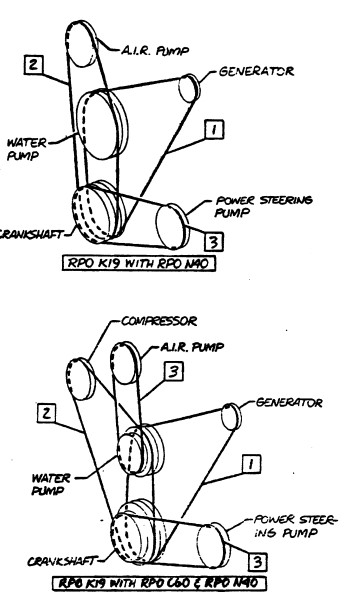 1st groove- Alt n water pump Center groove- water pump only Third groove- power steering