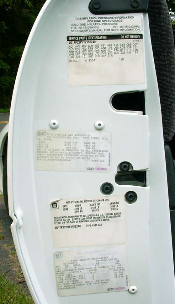 I think one of the rpo codes is actually called &quot;hood for transport&quot; or something like that. They must have put some plain hood on the cars to get it over to SLP where the SS hood was added. I had some 17x9 and 17x11 wheels painted white for my 96 SS. I put longtube headers on it and some other minimal mods like plug wires and coil. I never got it tuned before I sold it, but the guy who bought it ran a 13.4 in the 1/4 mile without a tune. Not bad for an automatic.