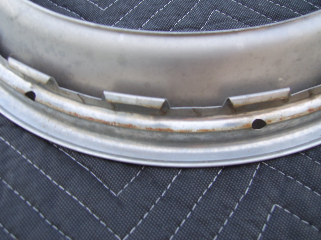 Here's an original early 1969 15"x7" ring with the pronounced oval stem hole and 4 clips for attaching to the wheel. I believe these changed to the serrated outer retainer in July of 69 as I have seen these on a survivor June car.
