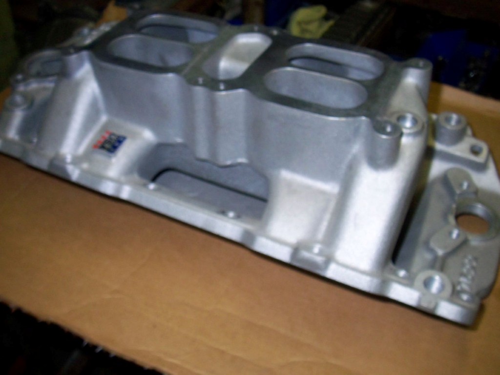 Here's a pic. Not trying to change your mind or anything if your heart is set on a T-Ram but just throwing out there a little more streetable alternative. Edelbrock Thunder Series #1805 (625 CFM) are already pre-calibrated right out-of-box for this particular manifold on BBC's.