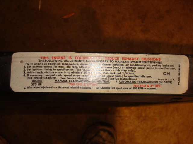 I picked up a mint 1969 radiator support that has what looks to be a original 375 engine decal on it. Any opinions
