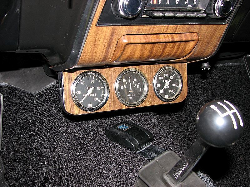 These were the ones found in Dana's 68 Yenko. Stewart Warner gauges. Some have the woodgrain holder and some do not.