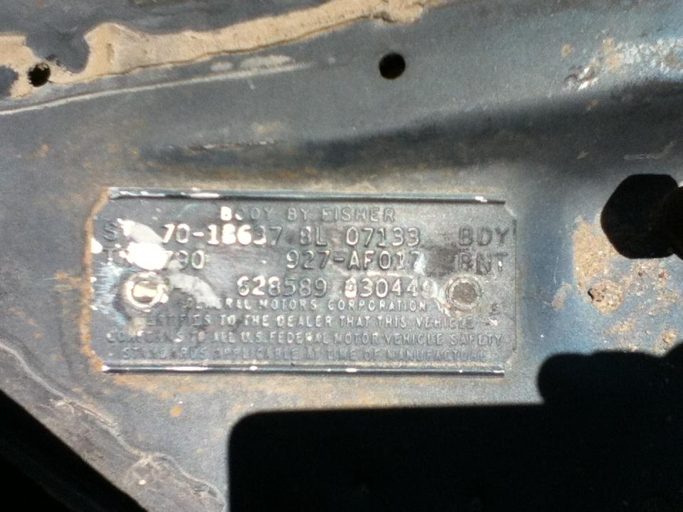 Upon looking at the trim tag it ends up the car is a special order paint code car. From what I understand each factory listed the special paint codes different and for LA they would list it using the dupont paint code. The paint code is listed at 927-AF017. I have not been able to find what this color was but the car appears to have been a shade of blue with stripes. Also from what I have read, the only way to get these special paint code cars was via the COPO program. What is known about these special paint code cars? Where can I decode this paint code? Do these special paint cars have any value higher than the average 1970 Chevelle (malibu) car? |
