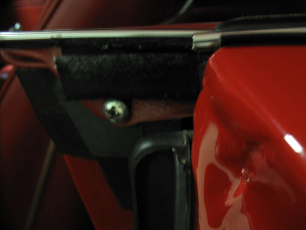 On the rears,a phillips head screw is used to fasten the beginning down also,near the windlace. I can't share a photo of the front door panel felts,as they drop down a good 1/2" or so and are difficult to see once on the car,but they are similar to the rear. |