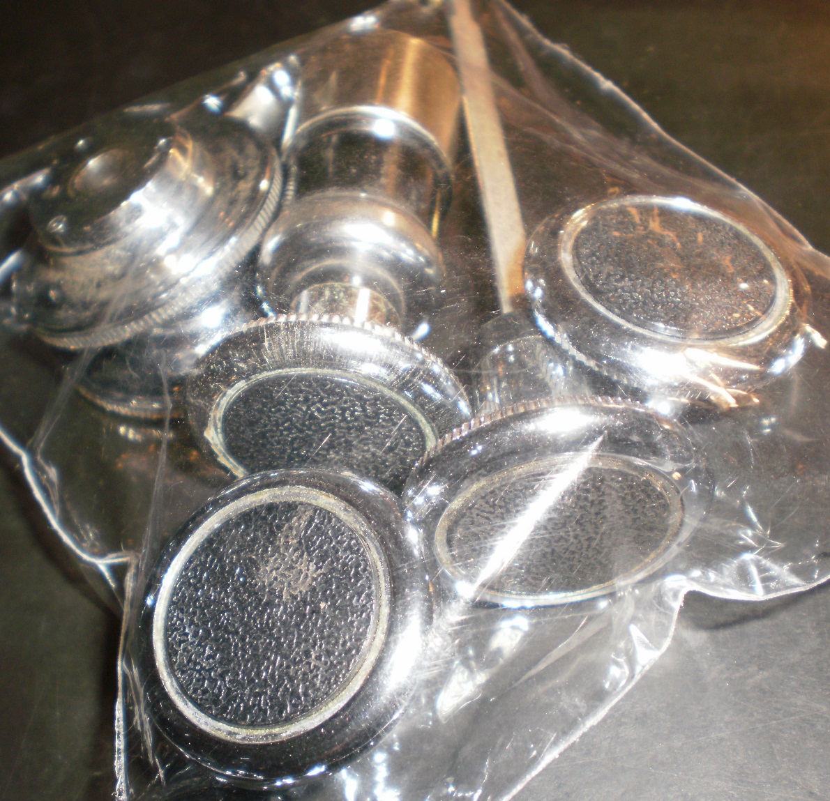 The black centers have a grain pattern and they are slightly smaller than the 1969 + 1970 Chevrolet knobs. Most likely earlier than 1969. Are they 1966 or 1967 Corvette? which would be my guess. Let me know or if you have a matched photo, post it here. Thanks