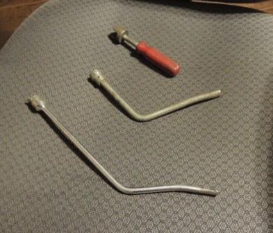 Drum brakes are incredibly easy to rebuild, especially the fronts since you don't have to wrestle the park brake lever and strut into place. Helps if you have two special tools, but can be done with pliers... just a bit more trouble. Two tools are pictured (yes, I know there are three, but two are for the same thing, just different brands). The two silver tools are used to remove and replace the return springs. Place over the stud that the springs hook to and twist. Spring will pop off. To reinstall, use the other end. Slip it through the hook on the end of the sping, slide the end of the tool over the stud, pull the handle toward the stud and the spring will pop on. The shorter of those two is a Corwell, purchased in the fall of 1971. The longer is a MAC, purchased when I misplaced the Cornwell. I prefer the Corwell because it works either left or right handed. It is also closer to 90 degrees bend, so you get better leveridge. Look at the blurry (sorry) close ups and you will see the MAC is beveled on one side only. It only works right handed. The red handle tool is for removing the hold down springs. Put one hand behind the backing plate to stabalize the retaining pin, press down on the spring retainer with the tool (it has tiny teeth to grip the retainer) and twist 90 degrees. This is a MAC tool, also purchased fall of 1971. I have tried Snap-On and many other brands, but always went back to the Cornell return spring tool and the MAC hold down spring tool. No other hold down spring tool I ever used held the retainer cap like this one does. Probably not as important to a hobbyist, but when you are doing 3 and 4 brake jobs a day, it makes a huge diffenence. I could do a brake job on a disc front drum rear GM car in one hour, and that included turning the drums and rotors and repacking the front wheel bearings. It also helped that the brake lathes were in my stall. I did somewhere in the neighborhood of 1000 brake jobs with these tools and they are not worn out. Used them on my 69 Z just last spring when it was coming together.