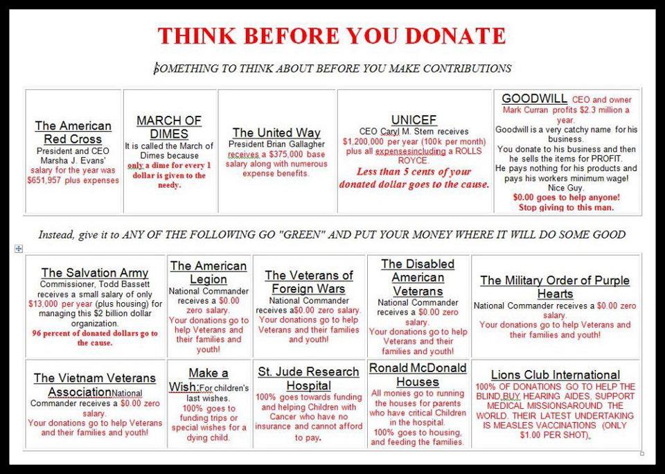 I personally won't give anything to Goodwill.That entire entity is misleading. |