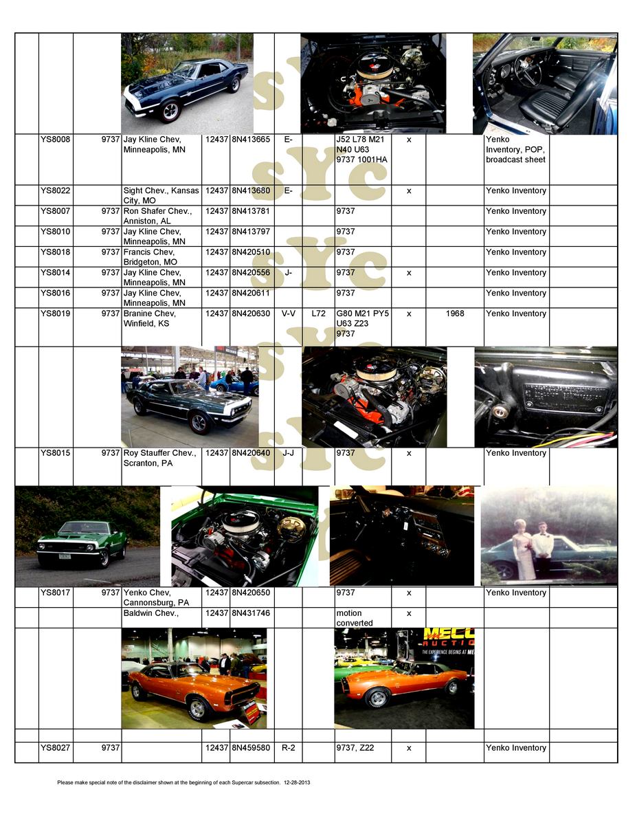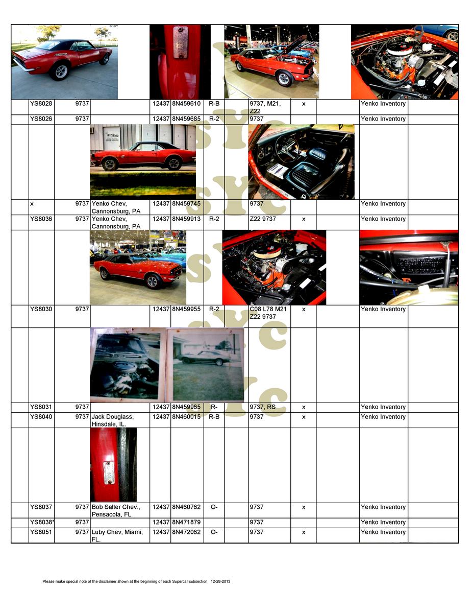 Notice how there's no 44 VIN's? It goes from 43 to 45. Mine is a 44 VIN and have the NCRS showing Yenko as the delivering dealer. It also has a 427 and all numbers, casting, cowl tag and completion date of motor are within 5 weeks of one another.