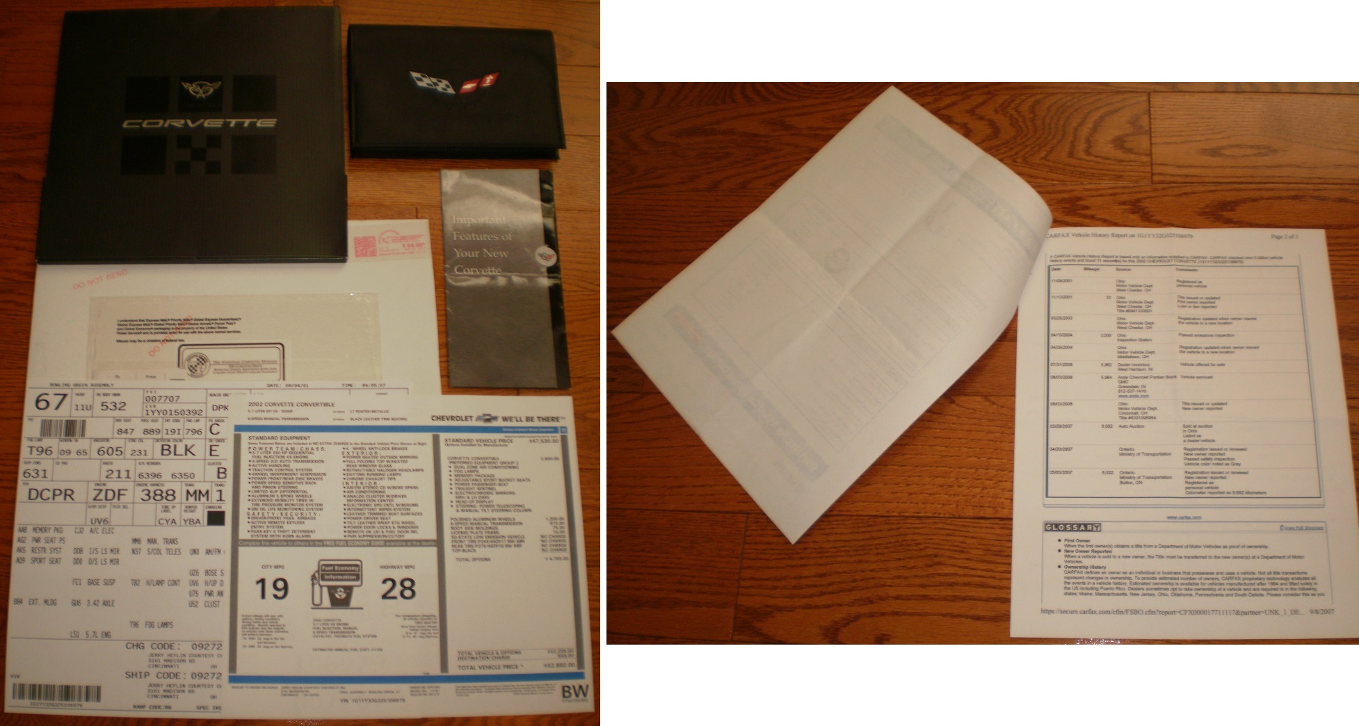 Comes with "The National Corvette Museum" package with Build Sheet, Window Sticker and numbers break down. Color is Light Pewter Metallic with Black Top and Black leather interior. Original dealer Jerry Heflin Courtesy Chevrolet Inc. Cincinnati Ohio. Motor 5.7 Liter V8 350 HP. I have owned the car for almost 6 years and bought it when it only had 6,000 miles. Car has never been driven in the winter and has never even seen rain, stored inside a garage all the time and only driven nicely on sunny days. Car has never been in an accident. Options include Convertible Preffered Equipment Group 2 (Dual Zone Air Cond, Fog Lamps, Memory Pack, Adj Bucket Seats, Power Pass Seat, Twighlight Sentinel, Electrochromic Mirrors, Heads Up Display, Power telescopic + Manual Tilt Steering Wheel) This Package was $2600 Polished Aluminum Wheels $1200 6 Speed Trans $815 Body Side Moldings $75 License plate frame $15 Window Sticker price when new was $52,880 Also includes a Magnaflow stainless steel exhaust system, Original owners manual, Original dealer brochure, Car cover, Original plate cover, Original unopened bag with locking rim lug nuts, Gm touch up paint and Gm extra oil filter. My Price $32,900 or B.O. <span style="color: #FF0000">*SOLD*</span> This Corvette drives and looks like new and it will be very tough to find a nicer C5 Corvette Convertible like this one. Email DANVIL1 at ROGERS dot COM Call Danny Home# 905 951 3587 leave message if i am not home.