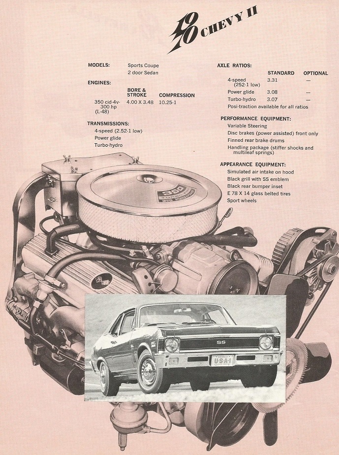 The Chevy II label was last used in 1968...the SS Nova came with E70 x 14 wide oval whiteline tires in 1970. 45 years later there is still lots of incorrect info on the web...so I guess this shouldn't be too hard to understand. Cool stuff..