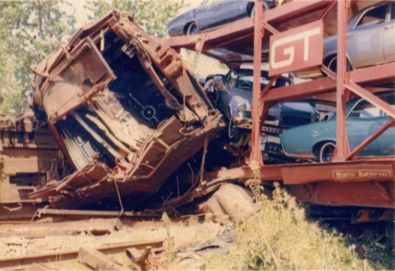 Haven't seen the 1970 derailment, but here's some from 1967 showing some unfortunate Pontiacs.