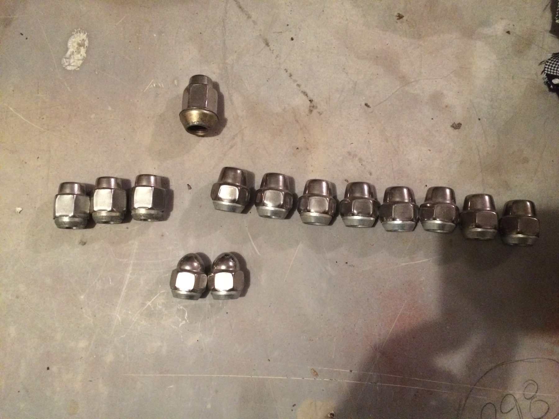 ![]() </div></div> Yep, that's pretty much what my wheel looks like too. I had the repro lug nuts on for over a year with no issues.....then I had a posi differential installed and took the car out to make sure the new posi was working as it should [img]<<GRAEMLIN_URL>>/ [/img] Soon afterwards is when the rear wheels loosened up and almost fell off.I did a search on this site for "lug nuts" and found several different threads over the past year or two with some options for more functional lug nuts, but I have not been able to find anything but these worthless repros that has a stainless cap like the originals. And finding NOS or good usable originals is next to impossible.