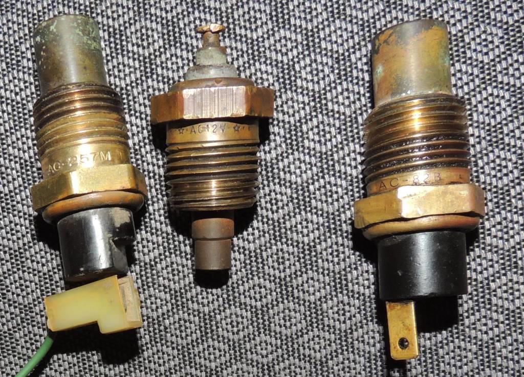 1. AC 275 M. Pin connector with correct terminal end. I believe this is correct for 69 Camaro with idiot light. I also have been told it comes on at 275 degrees f. 2. AC 82B. Spade terminal. No idea. Guessing a sender for a light, but don’t know. 3. AC 12V (which I assume means 12 volt). I removed this from a 72 Chevy truck, C50 with a temperature gauge, so would ASSUME it is a sender for a gauge. Truck is inop, so I don’t know if it was also equipped with a light, but the other head had a pipe plug where the sender would go. Three questions: 1. Am I correct on number 1? 2. I have also read that all the gauge senders used a threaded post connector. Anyone shed any light on this? 3. And can anyone confirm what numbers 2 and 3 are for and the significance of the numbers? Thanks in advance.