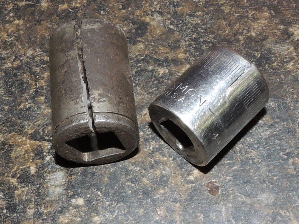 It appears neither of those sockets were impact sockets -- try the nail trick again using a six point impact socket either 17mm or 18mm. Take that broken Craftsman socket back to Sears and get it replaced. TAZ