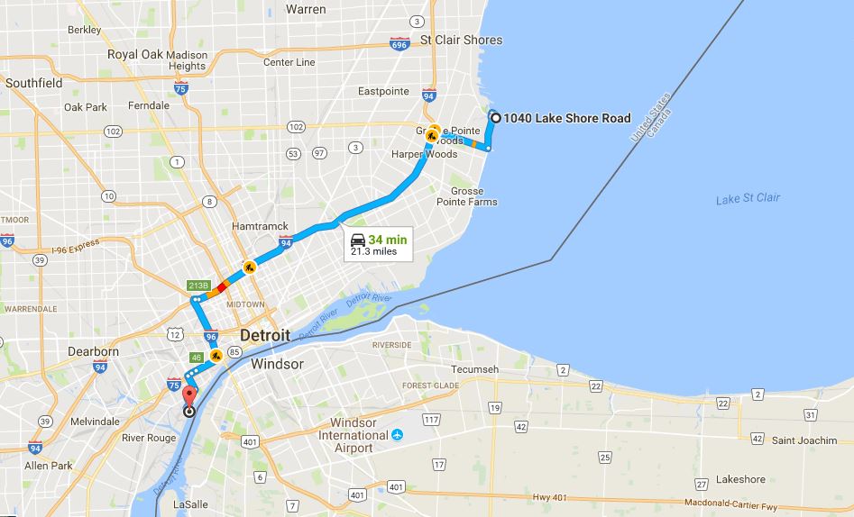 Watch out for the freighters, they leave a nasty wake. Once you're under the Ambassador Bridge, you will be greeted by the wonderful aromas of downriver Detroit. Smelled like money to the Fords.