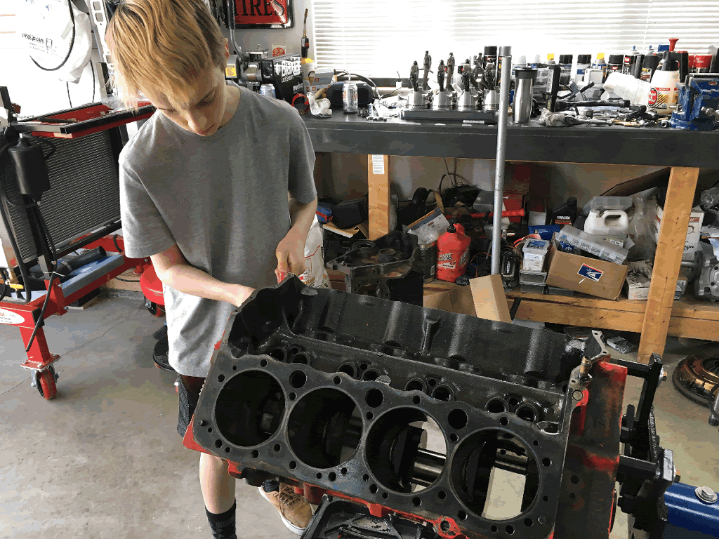 The oldest one is pretty keen to start building something behind my Z/28 build. We've been talking about project cars for a while and a 69 car seems to interest him the most. He's been hanging out in the shop with me while learning about engines, and he's truly becoming a little car nut now. I have a couple real nice 350 engines sitting here and a spare 302 as well, so no problem building a motor and transmission for him. I also have plenty of Camaro parts here so that would probably be the best thing to build with him. He was with me at the NW Nationals a few weeks ago and loved seeing all the fuel cars (and so did my wife which was a complete bonus) after cruising the pits. Here's one from him helping me tear down a 350 that's currently at the machine shop, and one of the family as we exited the pits at the NW Nationals. Hopefully we'll get something started for a build with him next spring and that's why I am starting an early search for a decent roller.