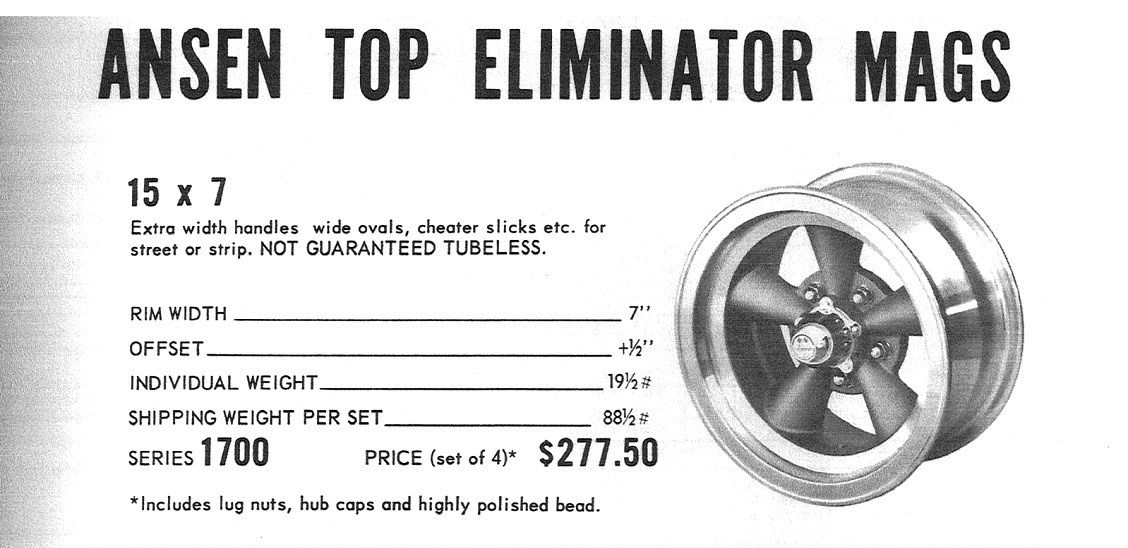Searching for a pair of 15x7, 5 bolt; 4-3/4" bolt diameter (chevy) Ansen Top Eliminator - 1700 series rims.