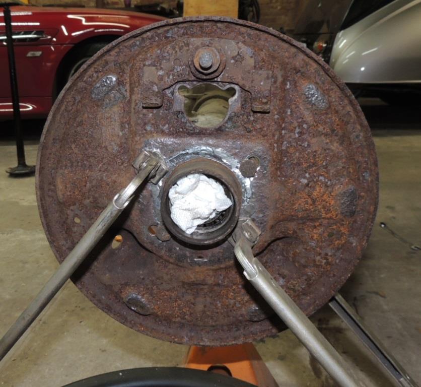 This is a continuation of my Cheap Big Brakes (CBB) upgrade on the 68 El Camino. You can read about how I put C3 Corvette rotors with 70’s truck calipers on the front here: http://www.camaros.net/forums/16-bra...e-upgrade.html In the first post there is a link to where I got the idea from a page on David Pozzi’s web site. The thread showing the mods to the rear, and the hidden trailer hitch is here: https://www.yenko.net/forum/showthread.php?t=133383 I have always considered myself a bit of a Hack Mechanic. I even hacked that term. A fellow named Rob Siigel wrote a column for years (decades actually) in the BMW car club magazine, The Roundel. Like Rob, I seem to find solutions to problems that are effective and efficient, even if a bit ugly. Fortunately, this El Camino is the perfect platform for my hackness. It is a no hit, almost rust free car, but nothing we would want to restore to factory original. 307 PG car with power steering and factory A/C. Been painted multiple times starting as Grecian Green, then a bright yellow, and now hot rod flat black. .020 over 350 with a forged crank, crane roller cam made for torque starting at 1500 rpm, stock 68 cast iron four barrel and Q;jet. 4L60E trans with stand alone controller. Currently has a 3.36 10 bolt, but I found a cheap 3.31 12 bolt. I modified the back end to make it suitable to pull my car hauler. I don’t need huge bearings in the rear, as I don’t put too much tongue weight on it; just need it to pull …. and stop. According several who have commented, I should be able to bolt on some 11 inch rear drums. Figured the perfect time to do it was while I was going through the 12 bolt before installing. I really didn’t want to mess with converting the rear brakes to disc, but thought upgrading from 9 x 2 drums to 11 x 2 drums would be a great match for the Corvette brakes on the front. Turns out it is not so easy. I believe there were a few Monte Carlos in the early 70’s (and maybe a few Chevelle’s) that received 11 inch rear brakes. Good luck finding those used parts. No one makes replacement backing plates for those big brake Chevelles. Virtually every source I checked indicated that backing plates off of a full size Chevy 12 bolt would bolt on to the Chevelle rear (or Camaro for that matter, as the backing plates and ends of the axle tubes are the same). No so. The full size Chevy has a larger axle tube. I purchased a set of 11 inch backing plates (apparently for 11 by either 2.5 or 3, as they were off set more than my Chevelle backing plates. All of the 11 x 3 drums I found were drilled for the bigger 5 inch bolt pattern, like what came on the big Buick or a Cadillac, instead of 4.75. My research indicated that a late 60’s full size Chevy could have 11 x 2 drums in the rear. Bolt pattern is 4.75. One of the kind members on this site (L78Steve) was parting out a 12 bolt rear from a 69 Caprice. He checked, and it had 11 inch brakes in the rear. Steve was kind enough to send me the drums, the backing plates and all the associated hardware for free. All I had to pay was shipping. What a deal. Sure enough the center hole in the backing plates is considerably larger than the ones for A body or F body cars. Hmmm. I have free brake drums and free backing plates. A little crusty, but still solid. Decided it was time to hack out a solution. More to come. Below are pictures showing the difference in the backing plates. This nicely primered backing plate isn't one that Steve gave me, but is one of the ones made for 11 x 3 brakes. Hole and bolt pattern is exactly the same though.