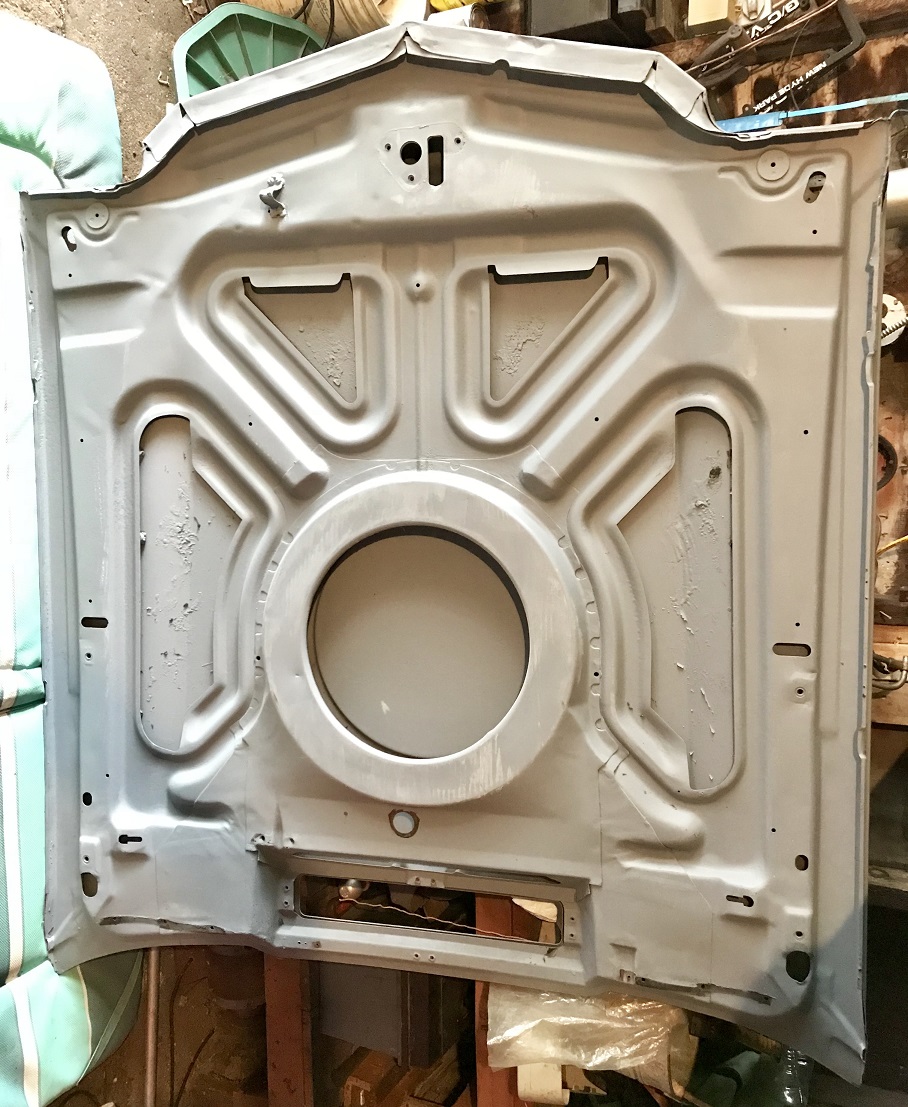 I recently found an original early design 1970 Chevelle/El Camino cowl induction hood at a local body shop. They were restoring a 1970 Chevelle SS for a client who opted for a new reproduction hood. There’s no rust at all but does have a couple of dings on it as well as a dent up front, all very repairable. It was taken down to bare metal and primed, which is exactly how I got it. It is just the bare hood, no flapper or accessories included. The early style hoods have smaller openings in the inner structure and do not have the crumple zones that were built into the later design. I believe they changed to the later design sometime around March of 1970 so they are hard to find and are not being reproduced. (SOLD)