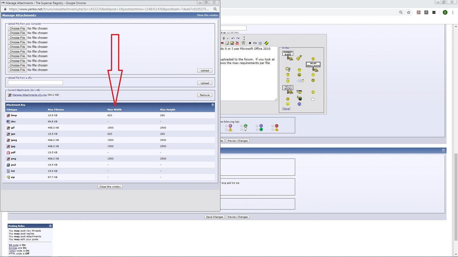 Allow current sizes, then have the SITE UPLOADER RE SIZE THEM. I just went through this, on my forum. I can’t post pics here. Someone needs to go in and fix the uploader.