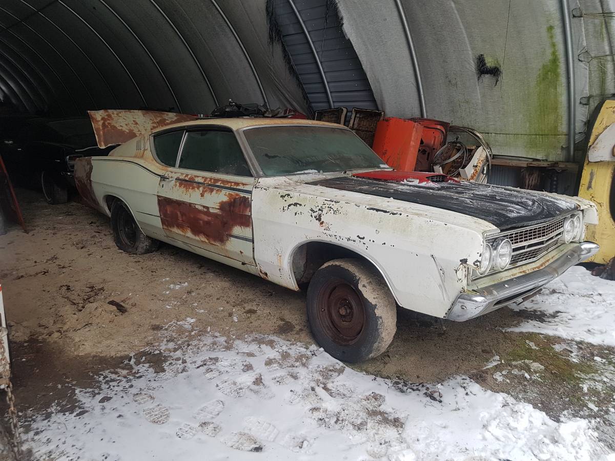 " Super rare 1969 Ford Torino fastback R code super cobra jet, drag pack car. Factory 4spd car. Factory tach dash. Comes with a 429 super cobra jet running motor. Body is pretty solid over all. Frame and floors are good as well as trunk floor. Interior seats are in decent shape. Also comes with GT wheels and gd tires not pictured. Glass is in good condition. Highly optioned car, i will provied the Marti report. Asking 16900 obo "