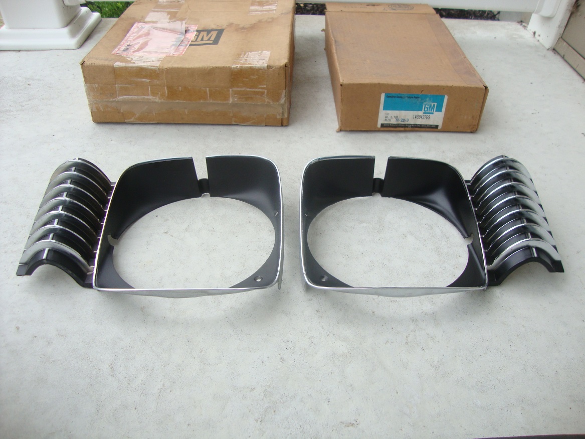 Matched pair of NOS GM 69-72 Nova headlight bezels. Part numbers are 3949789 and 3949790. Great shape. They just need cleaning and polishing from years of storage. One box is missing the GM sticker but it is a GM box. $250 pair shipped. SOLD SOLD SOLD SOLD