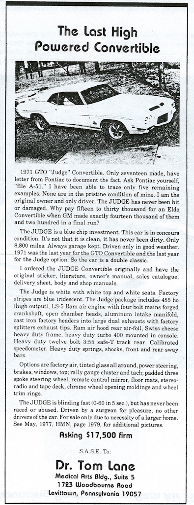 Not only is this the last judge built, but a convertible survivor that was Vintage Certified and achieved Legend award.