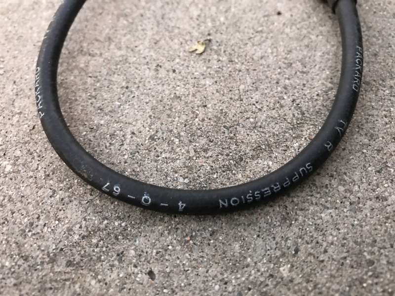 But they're real and can't be common any more. No part number on the box anymore. Take a look at the photos; they're dated 4 - Q - 67 "TV R SUPPRESSION" - box handwriting says motors with distributor at front... 348 409? But I'm not sure. These are REAL GM wires. PM with questions, thanks all. $90 shipped to the 48. Thanks sYc, Anthony Last edited by AnthonyS; 05-07-2018 at 12:57 AM. Reason: lower price |