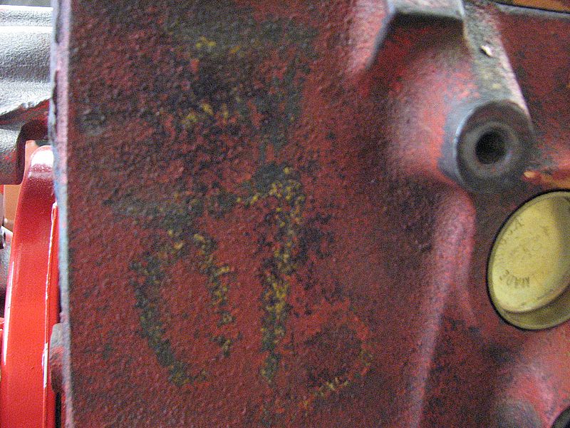 All inspection marks that I have ever seen were on the bare cast iron with rare exception. Depending on the type of applicator the paint often times did not stick to the inspection mark too well plus it is likely they were not always dry before the engine was painted. Here are some examples of engine assembly markings.