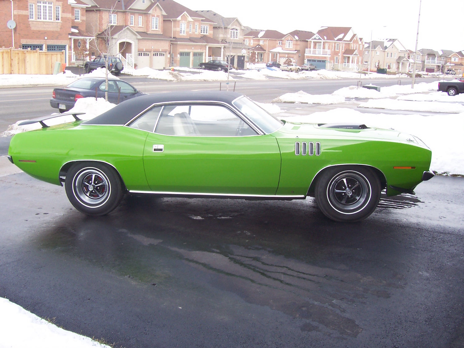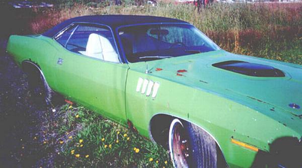 It is well-restored, I am friends with the original restorer (completed 2007) and he is incredibly knowledgeable about 'Cudas and Challengers. He restored it to the broadcast sheet which meant NO BILLBOARDS, NO RALLYE WHEELS, NO ELASTOMERIC BODY COLOR BUMPERS - the car did not come from the factory with those gingerbread options. Trans and Dana are original to the car. Interesting aside - two friends walked into the same dealership one day in late 1970 and ordered two '71 6bbl Cudas in Sassy Grass Green, both Shaker cars. One with black interior and one white (this one). One with black vinyl top, the other without. One car ended up in a major accident and parted out. This one was left to rot by the ocean in Newfoundland, Canada. Its picture was all over the internet when it was featured on Cars In Barns website in the 90s - a pic I included below. https://www.mecum.com/lots/SC0519-37...plymouth-cuda/