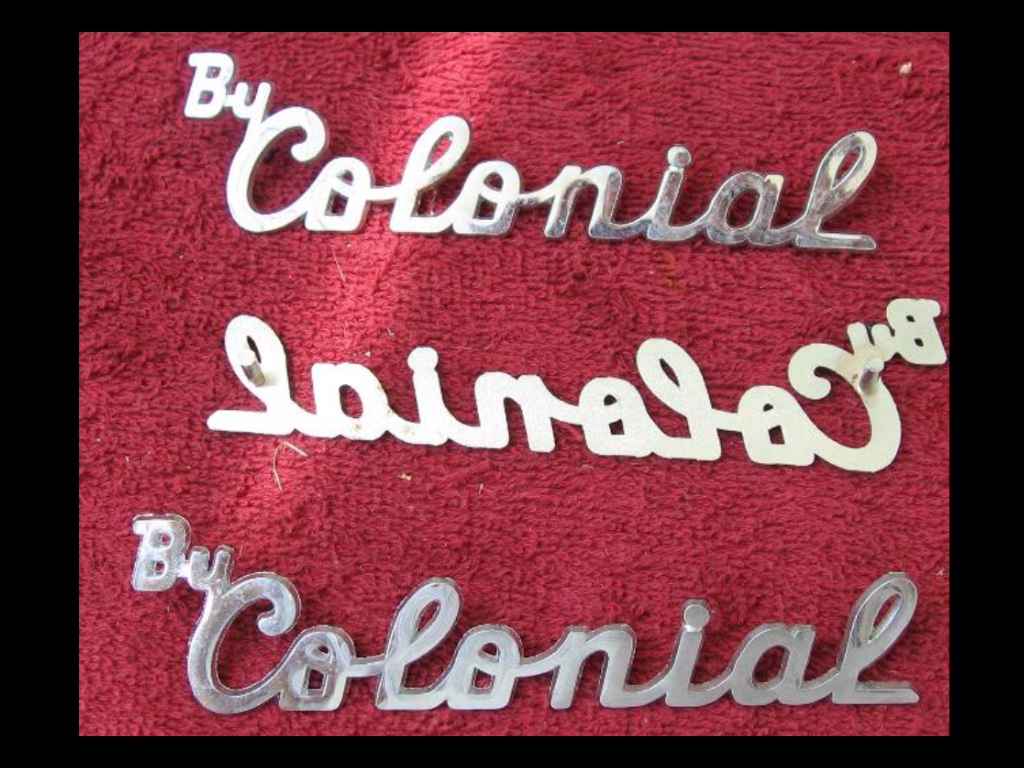 Did you see the Nos Colonial Wilmington Emblems as below pic @ this link... https://www.varagesale.com/i/prh8qp2...nameplates-nos Also, this guy had some Colonial Keyrings available a couple years back... https://www.elcaminocentral.com/showthread.php?t=221810 ![]() ~ Pete .