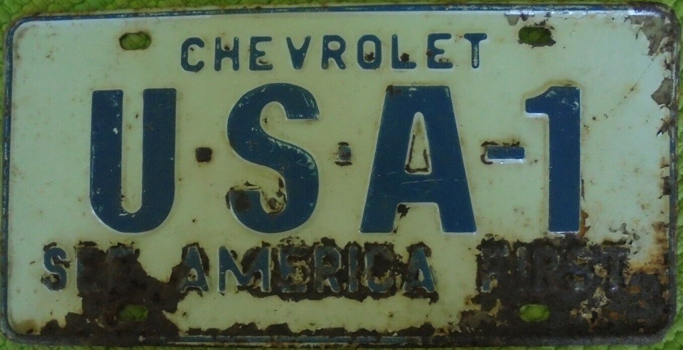 ebay.com/itm/Vintage-CHEVROLET-LICENSE-PLATE-USA-1-See-America-First-Dealer-Promo-Topper